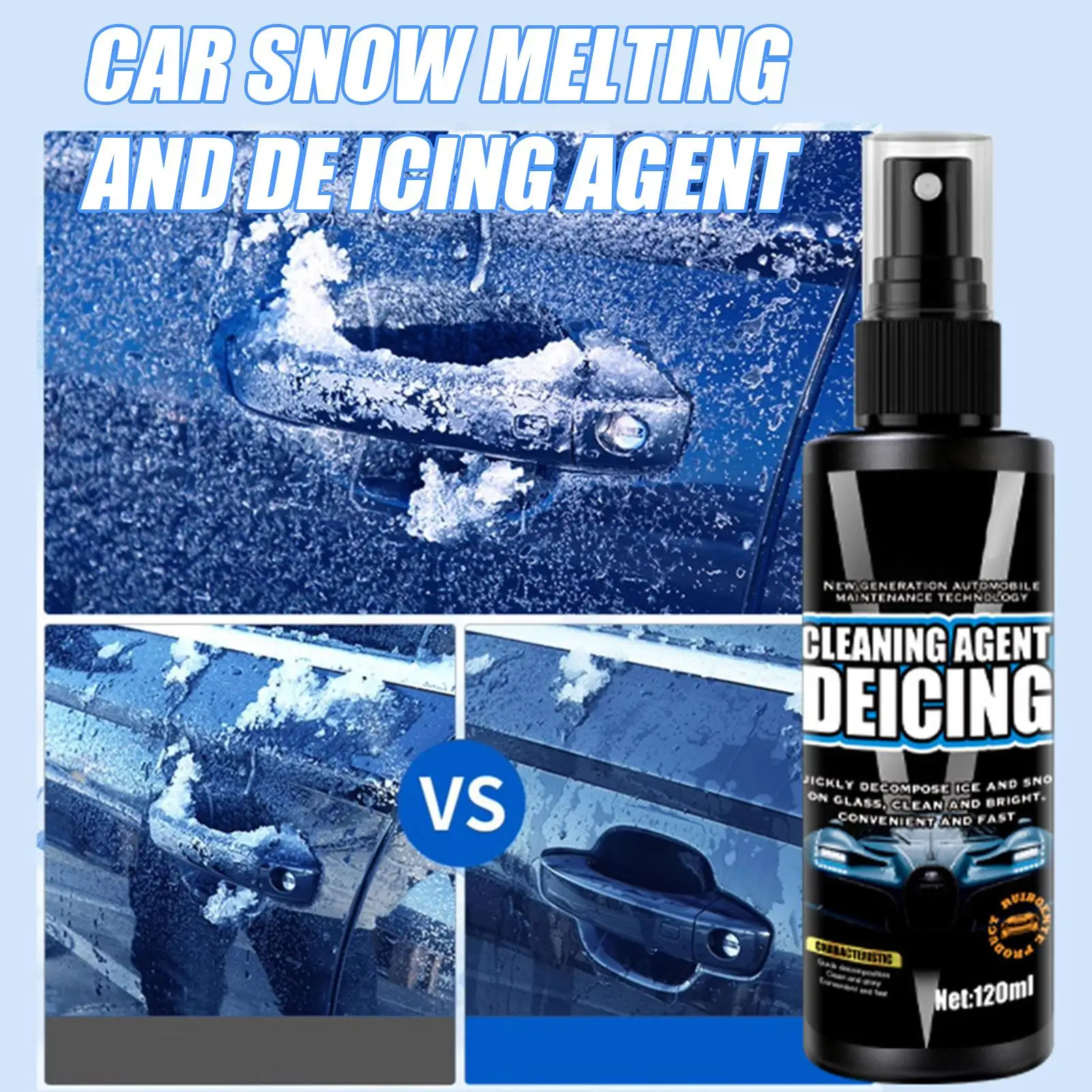 Deicer Spray 120ml Forniture automatiche veloci e di lunga durata Sbrinatore per finestrino dell'auto Spray per faro Tetto Inverno Giardino domestico all'aperto