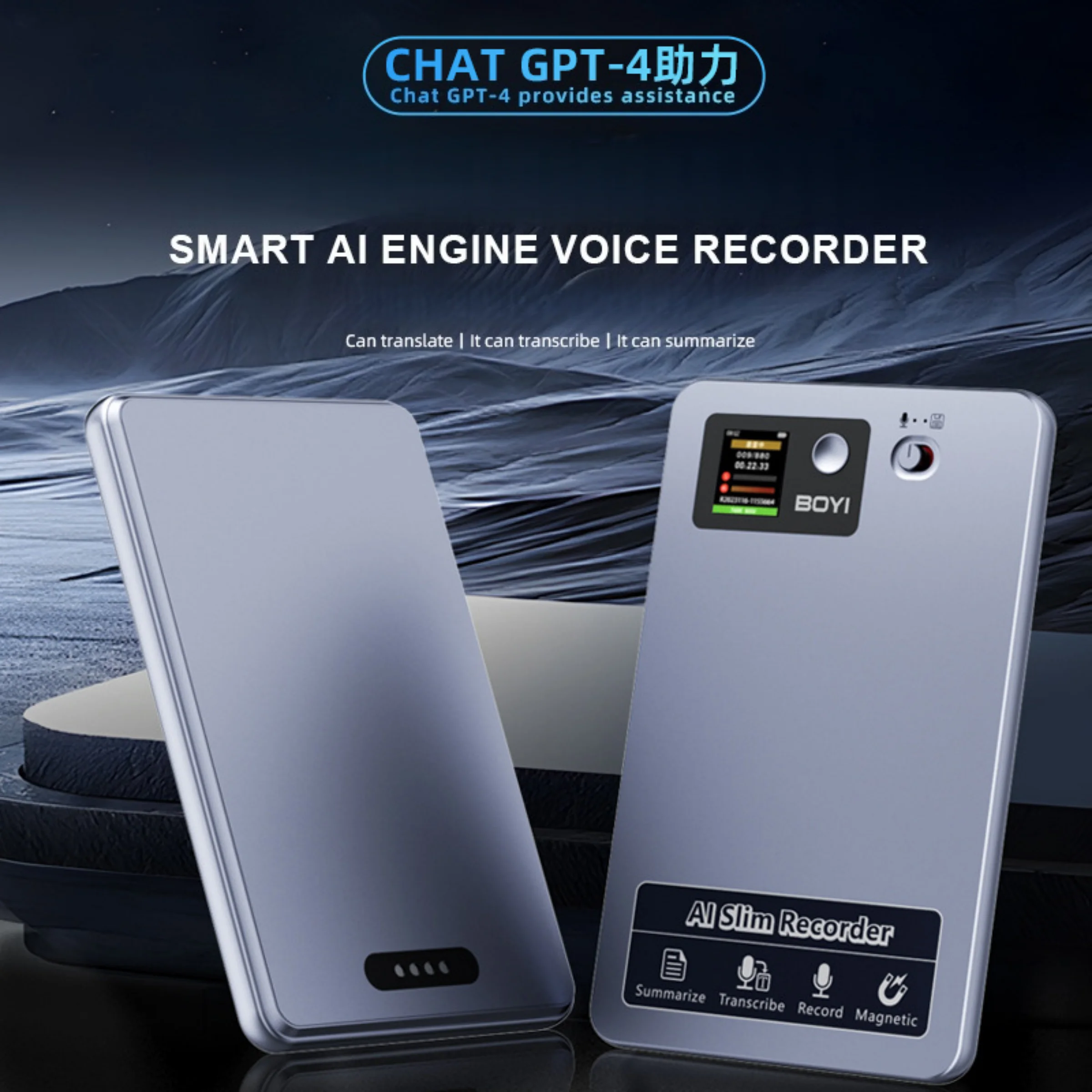 2025 Vendita Calda AI ChatGPT-4 App Chiamata Telefonica Registratore Vocale Intelligente in Tempo Reale Trascrivi Summarize 152 Lingua Suono Dittafono Audio