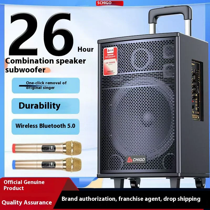 Altoparlante trolley wireless Bluetooth Subwoofer ad alta potenza Audio esterno Altoparlante portatile K Song live Suono di trasmissione All-in-one