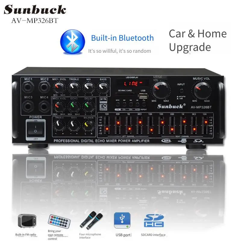 Amplificatore digitale Amplificatore audio Bluetooth Amplificatore audio HIFi per auto domestiche Karaoke Blocco partizione professionale Premendo altoparlante