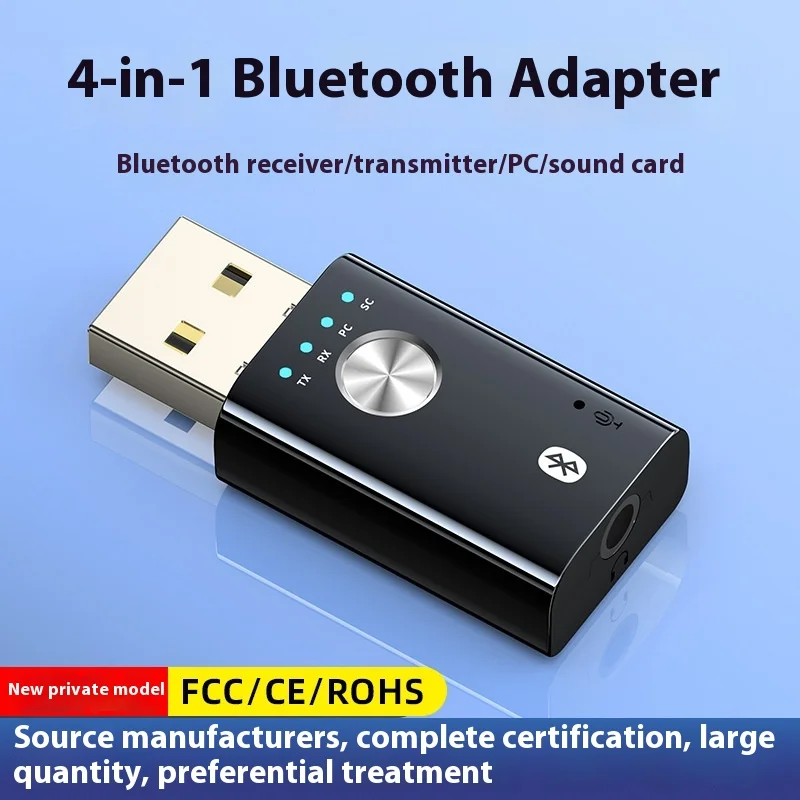 Trasmettitore ricevitore audio Bluetooth 5.1 4 in 1 Adattatore wireless USB AUX stereo per kit auto TV PC Adattatore audio per cuffie