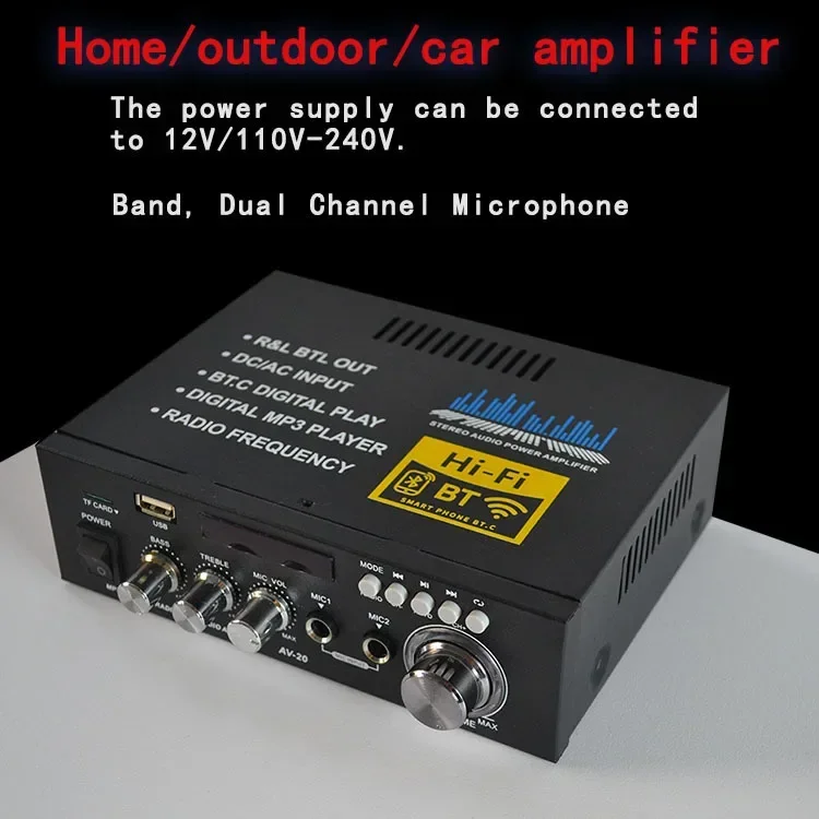 2025Bluetooth 2.0 Amplificatore ad alta potenza 220V Mini ricevitore di schede domestico Unità USB con altoparlante per basso Karaoke