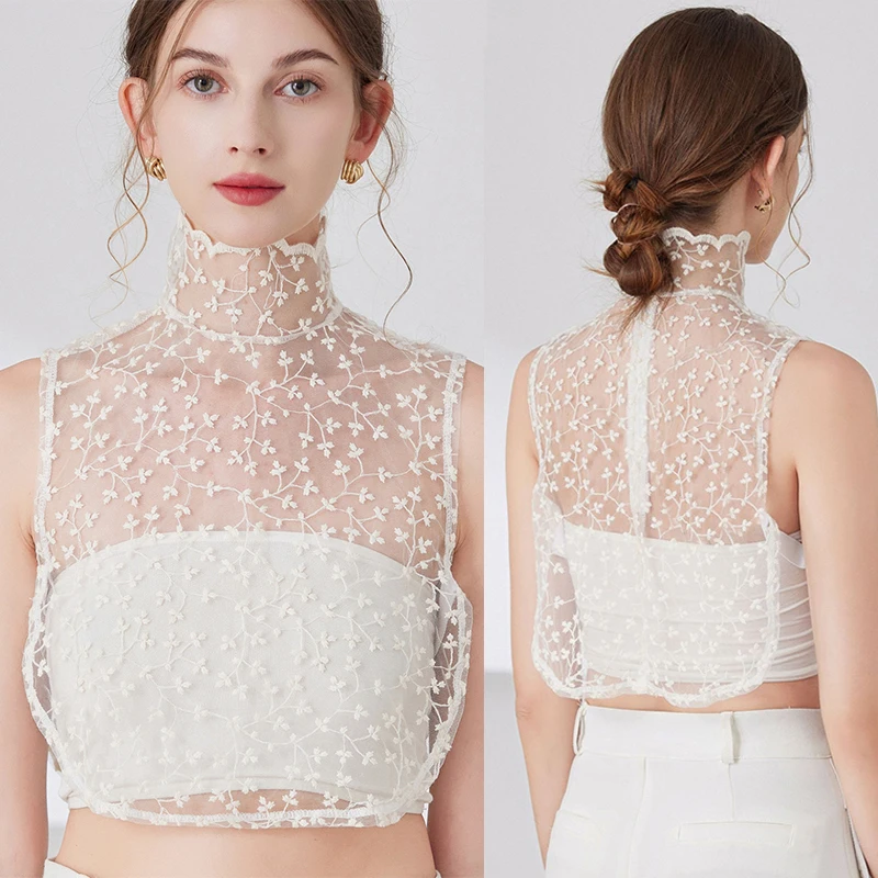 Bellissimo Colletto Finto a Petalo, Colletto Staccabile in Pizzo Trasparente, Ricamo Floreale, Colletto Finto Color Albicocca, Decorazione per Maglioni e Top