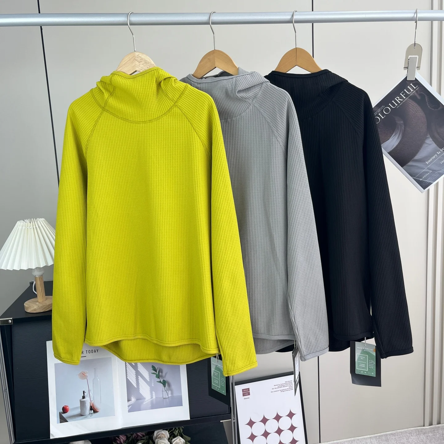 Felpa con Cappuccio Leggera e Traspirante in Tessuto Waffle a Maniche Lunghe, Vestibilità Ampia, Serie Mountain per Coppie, Abbigliamento Streetwear alla Moda