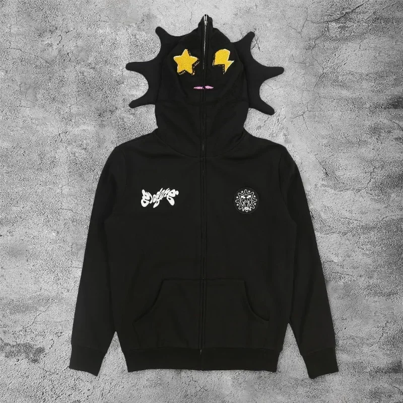 Felpa con cappuccio con cerniera stampata moda di strada personalizzata da uomo e da donna con collo in pelliccia autunnale e invernale retrò y2k
