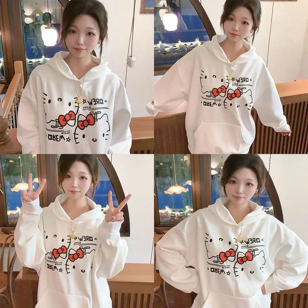 Felpa con cappuccio Hello Kitty Kawaii Sanrio riduce l'età fresca dolce colletto tondo cartone animato confortevole carino primavera autunno maniche lunghe calore