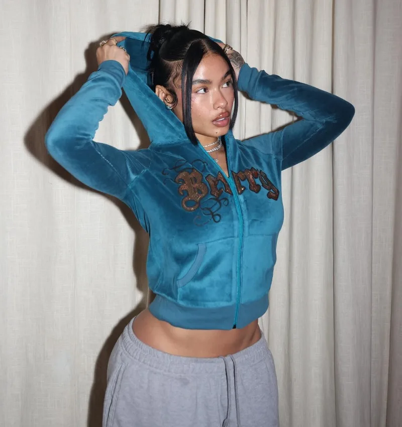 Felpa con Cappuccio Y2K Retrò Ricamata a Righe con Cerniera, Abbigliamento di Tendenza High Street 2026, Stile American Street Harajuku Oversize da Donna
