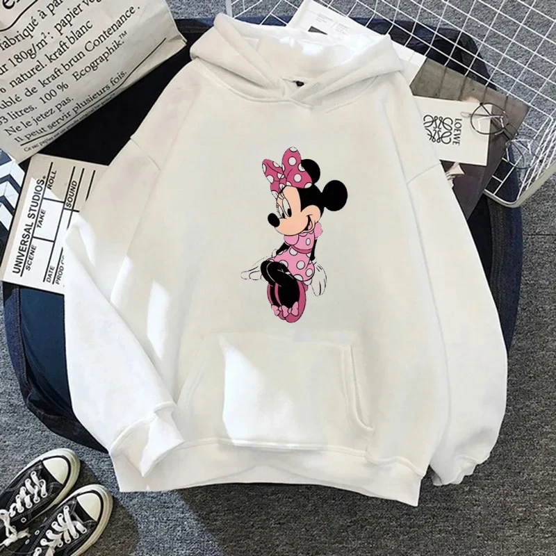 Felpa con cappuccio da donna stampata Minnie Mouse Kawaiii Disney Felpa Autunno Moda femminile Casual O-Collo Streetwear Pullover Abbigliamento