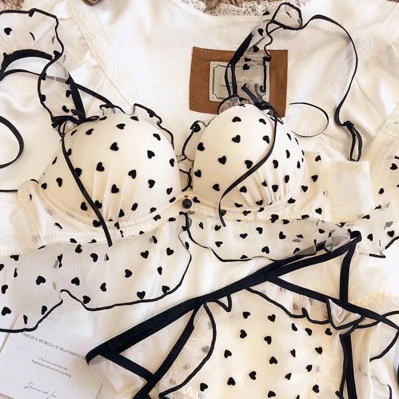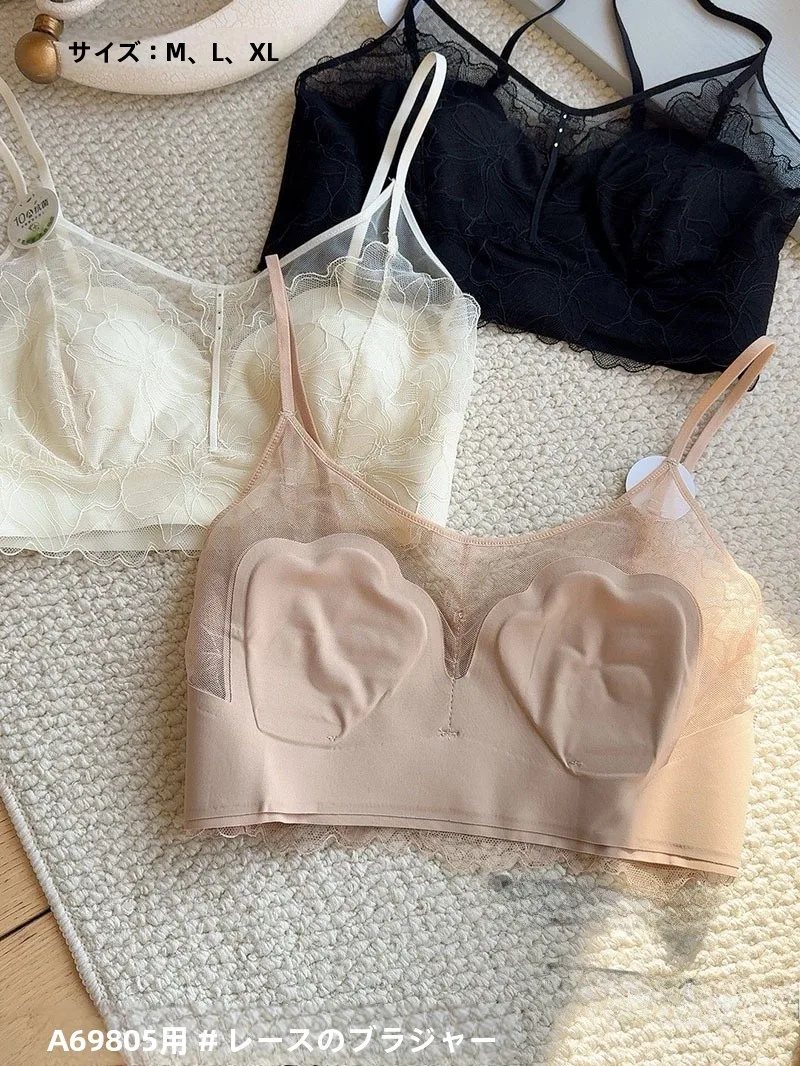 Intimo in pizzo a rete in stile giapponese senza anelli in acciaio, seni piccoli da donna raccolgono insieme, reggiseno sexy e puro, dolce e carino