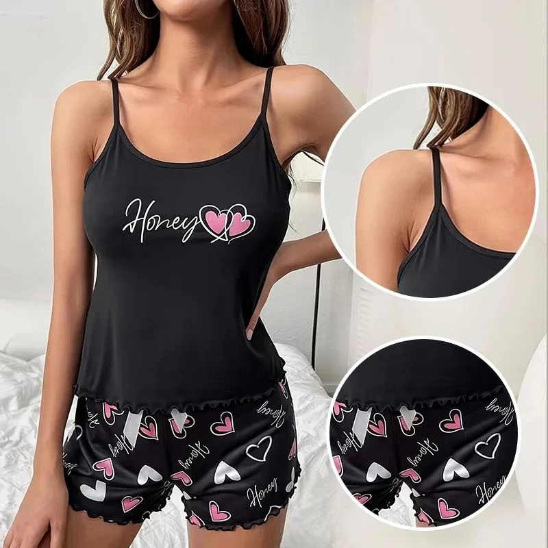 Pigiama da donna con stampa casual e confortevole, set di indumenti per la casa, materiale morbido, traspirante, delicato sulla pelle