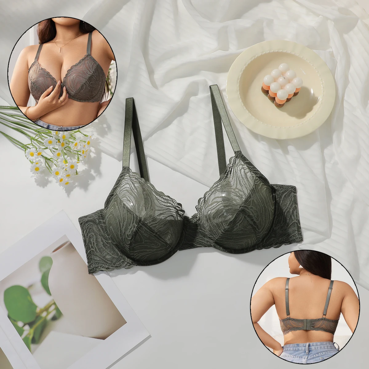 Reggiseni Plus Size Verde Scuro con Ferretto Senza Imbottitura, Supporto per Seno Grande, Reggiseno Non Imbottito, Lingerie per Uso Quotidiano