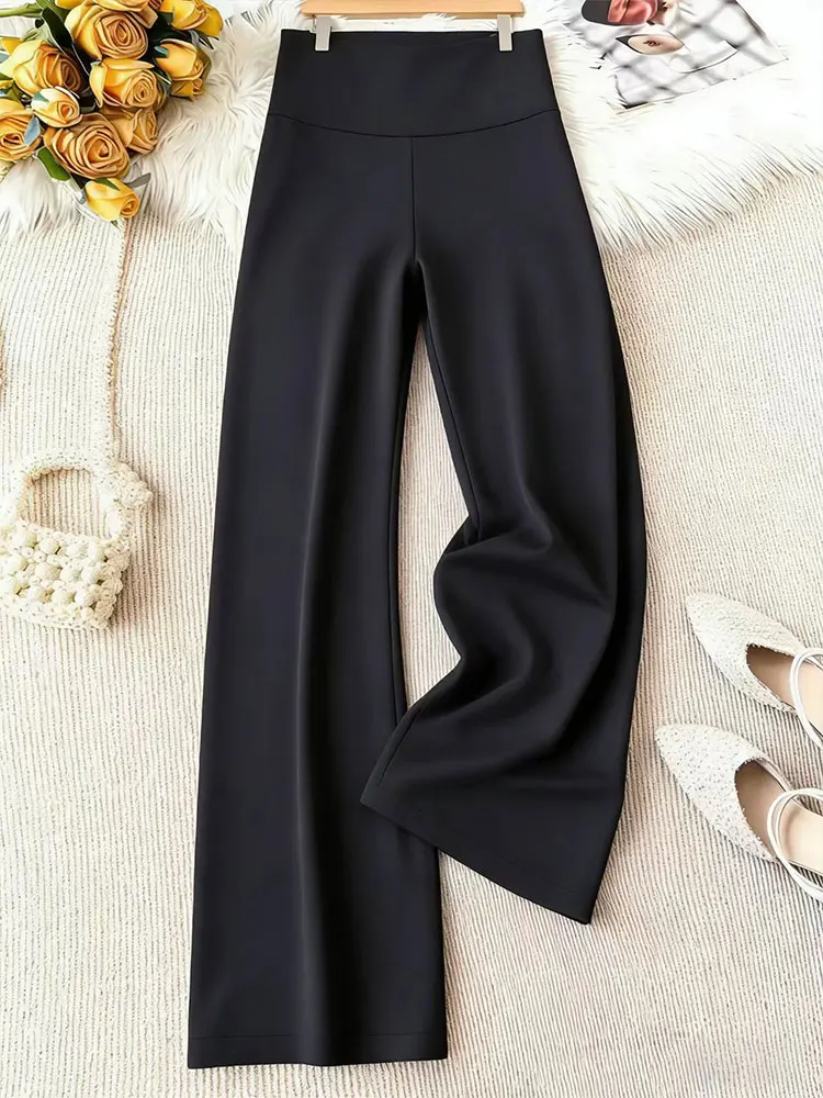 Pantaloni neri a gamba larga da donna, eleganti, alla moda, tinta unita, abbigliamento urbano da ufficio, abbigliamento business, streetwear casual primavera estate