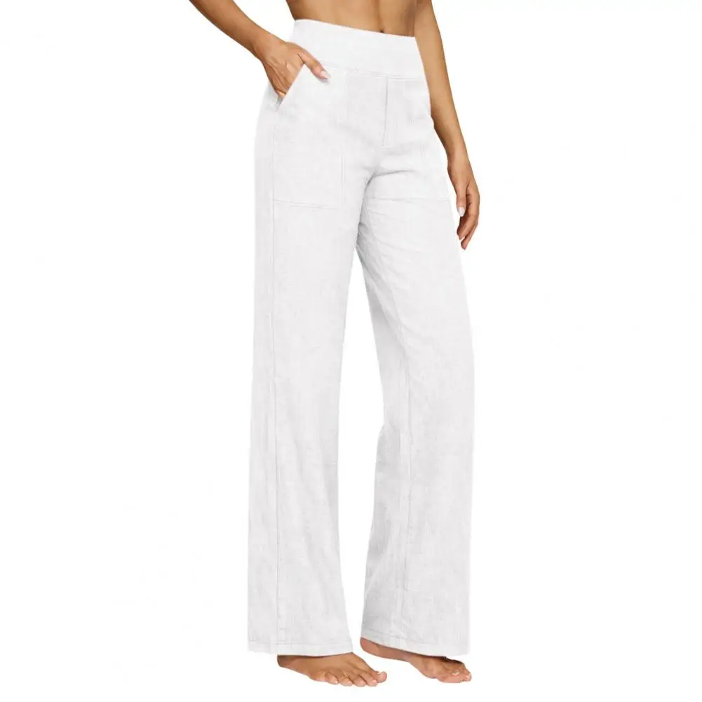 Pantaloni Larghi da Donna in Misto Lino e Lyocell, Tinta Unita, Versatili, Casual, a Gamba Dritta, Vita Alta, Primavera Estate