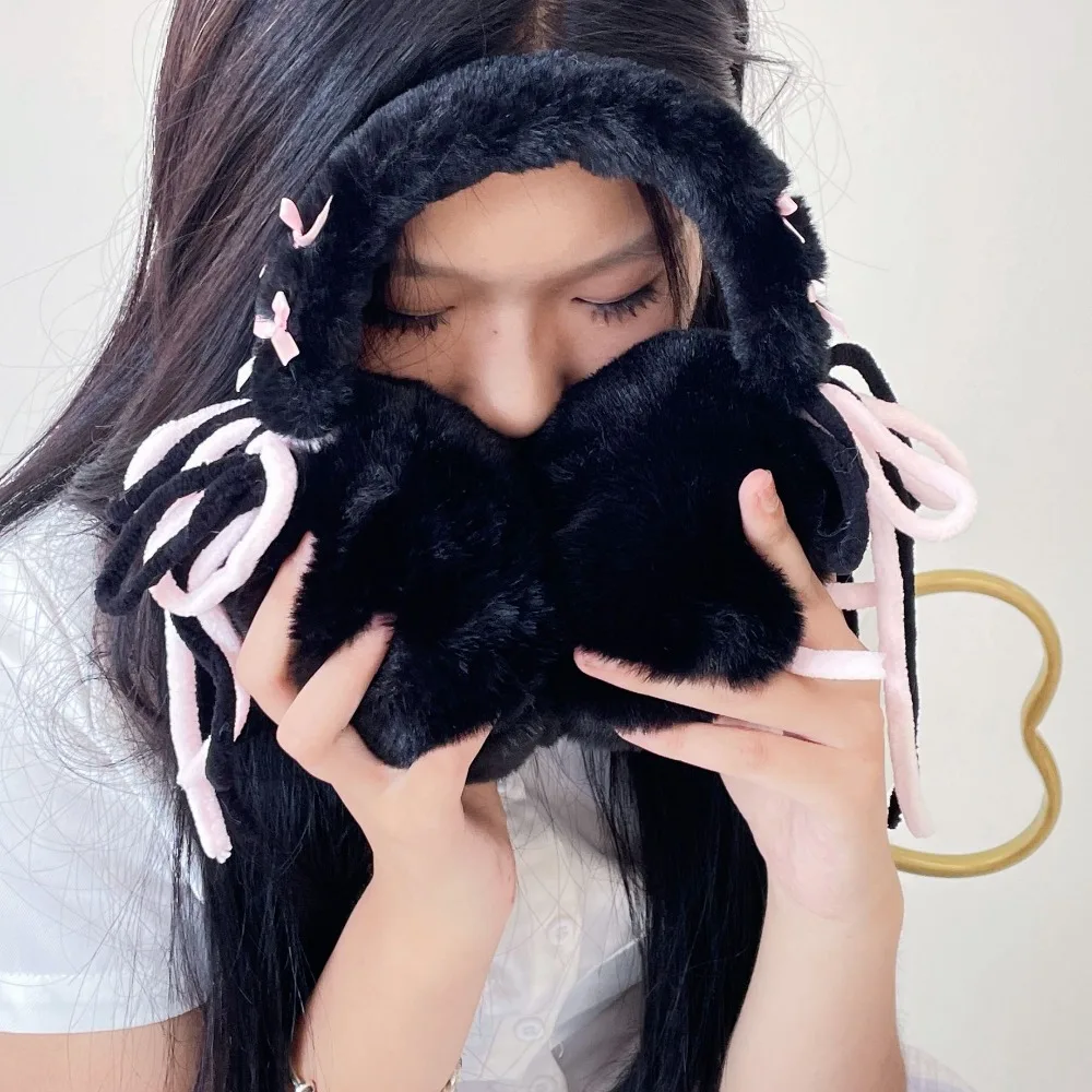 Scaldacore Y2K in Finta Pelliccia di Coniglio con Fiocco e Paraorecchie Morbidi Antivento per Ragazze