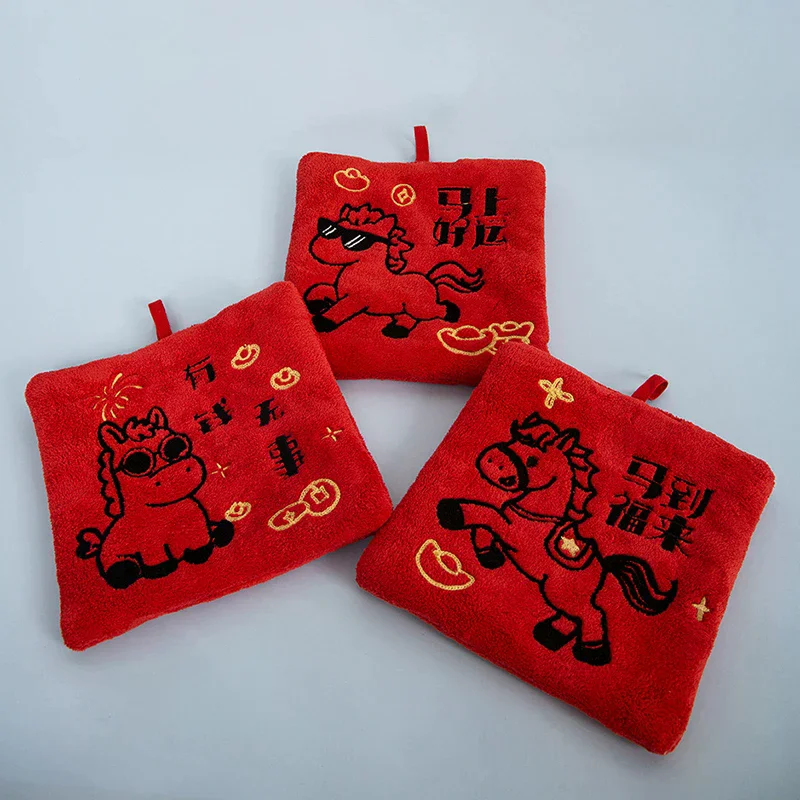 Asciugamano a Forma di Pony Rosso Cartoon, Asciugamano Zodiacale del Cavallo per il Nuovo Anno, in Velluto Corallo Assorbente ad Asciugatura Rapida, Asciugamano da Bagno Appeso, Decorazione per la Casa