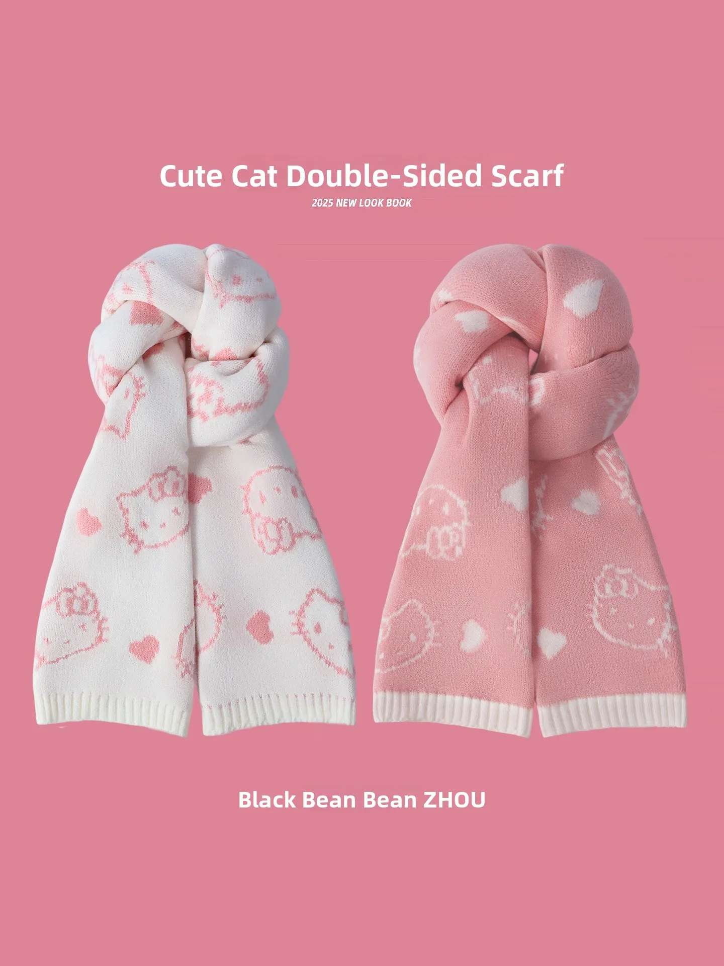 Sciarpa Lavorata a Maglia Bifacciale Kawaii Kit da Donna, Calda per Autunno Inverno, Anti-Freddo, Stile Coreano, Scaldacollo per Studentesse
