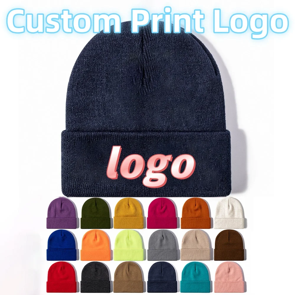 Cappello lavorato a maglia antivento caldo da uomo in tinta unita con logo stampato personalizzato Cappello da corrente di marea classico alla moda stile vintage da donna