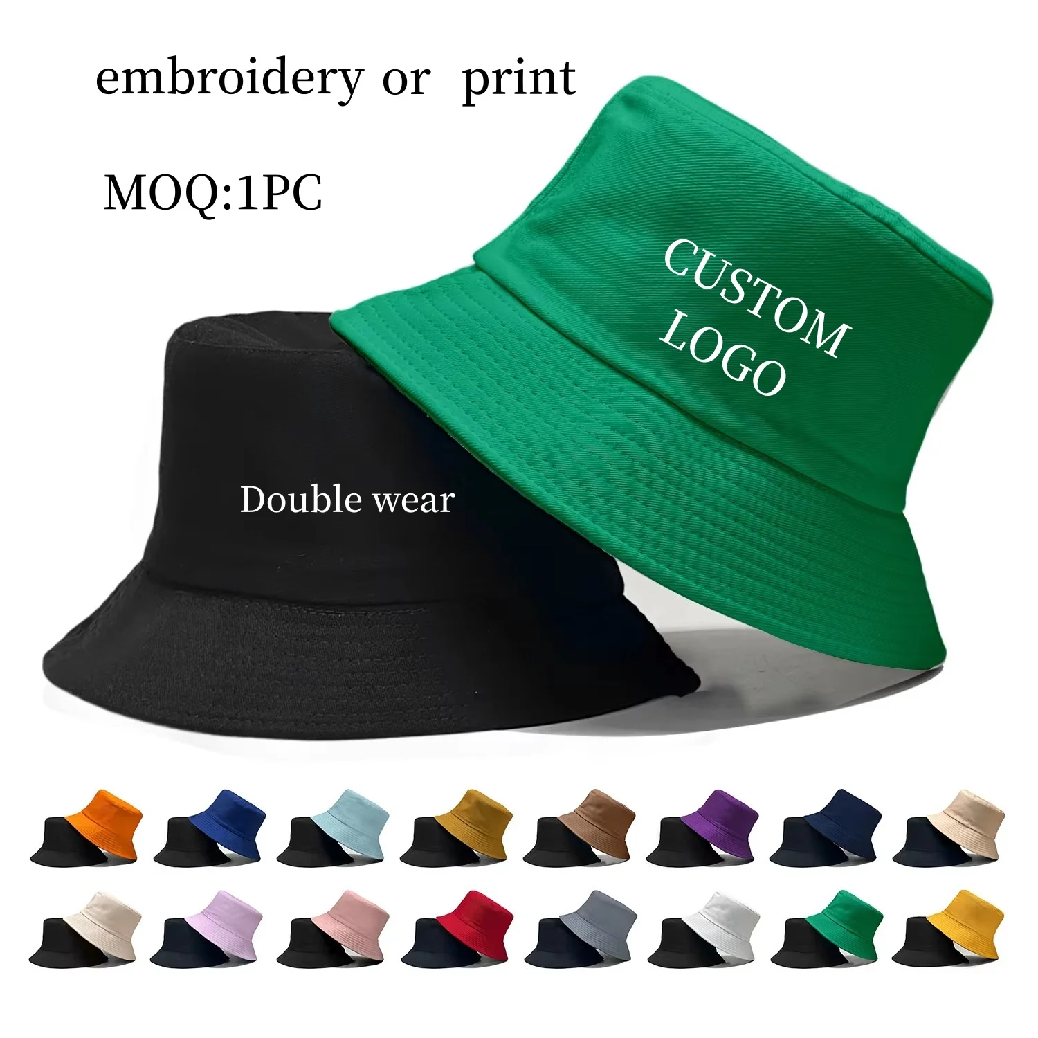 Berretto da pescatore doppio lato con logo personalizzato Primavera Estate Cappello da pescatore da spiaggia per sole all'aperto Donna Uomo Bob Panama in puro cotone