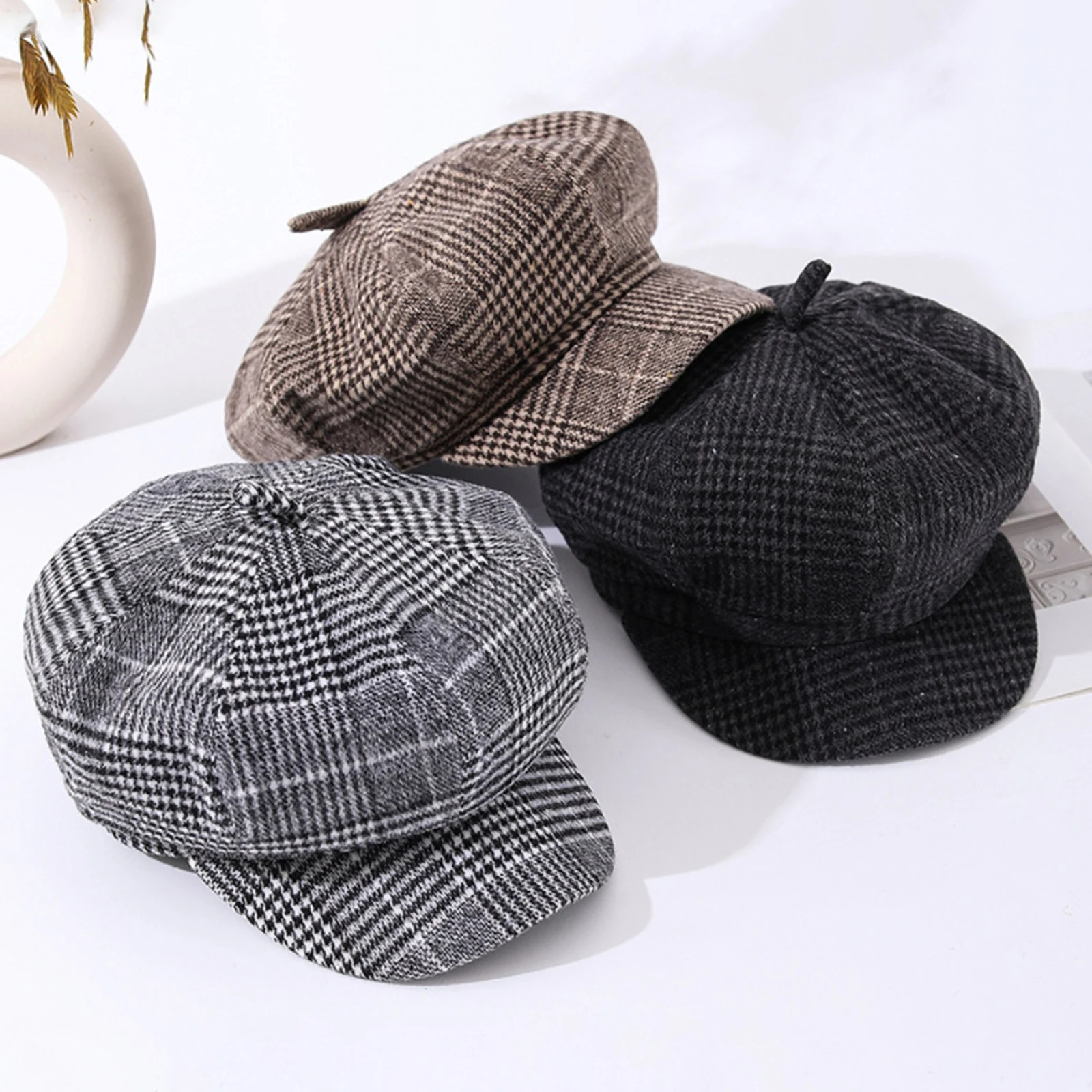 Cappello da strillone da donna Cappello da panettiere da ragazzo con stampa scozzese vintage Cappello da taxi edera morbido e traspirante