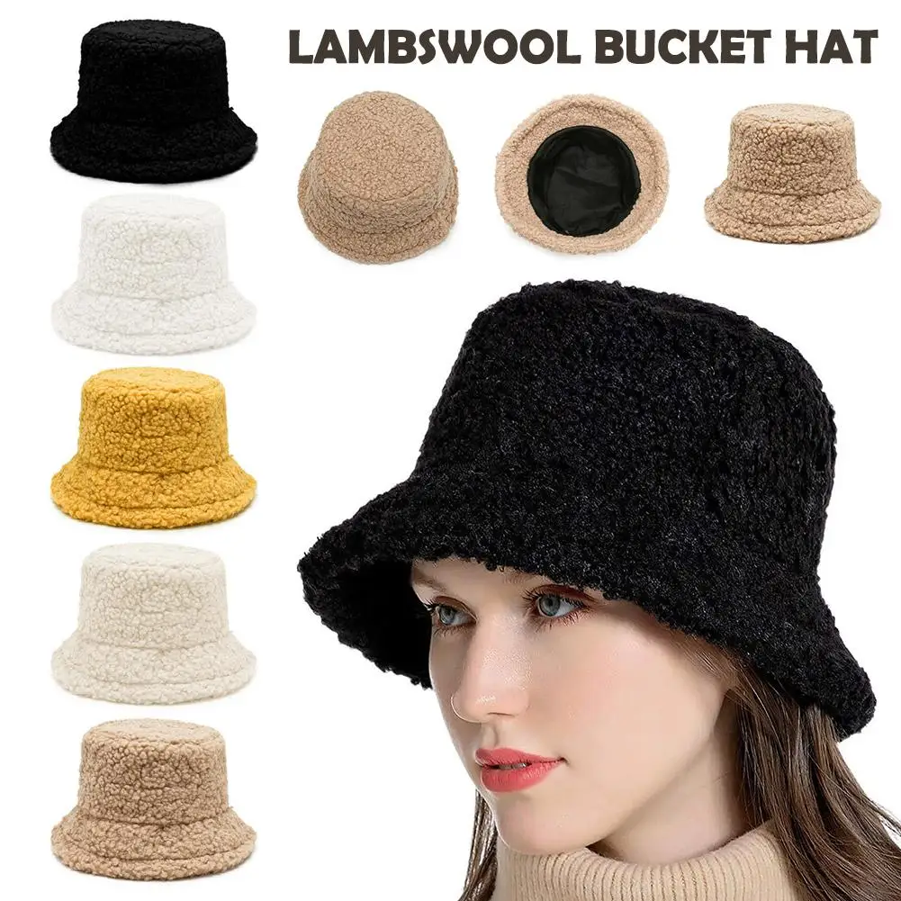 Donne di Inverno Della Pelliccia Sintetica Cappello Della Benna All'aperto Caldo Agnello Nero Cappelli Da Pesca di Lana Vintage Solido Cloche Panama Soffice Pelliccia Sintetica Calda U5R5