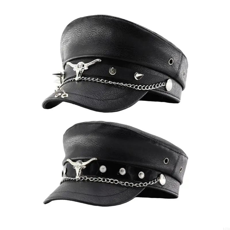 L5YA Bullhead rivetto catena dettaglio giornale ragazzo berretto cinturino regolabile tessuto stile francese accessorio