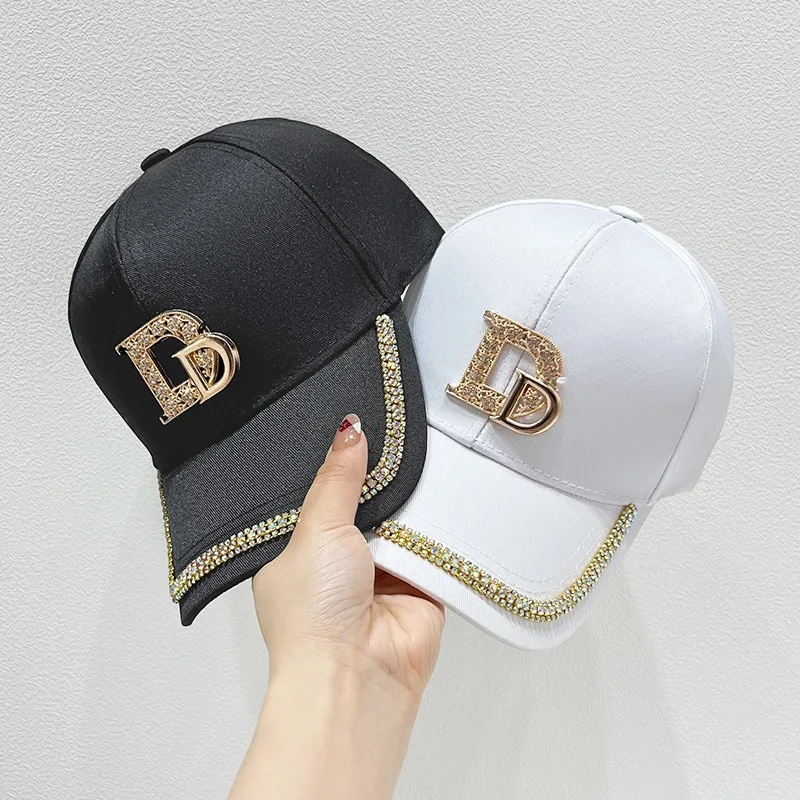 Berretto da baseball con diamanti acrilici DD Letter per uomo donna, cappello da papà regolabile alla moda per la primavera estate autunno