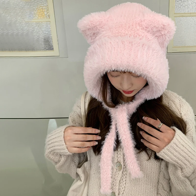 Autunno e inverno nuovo orso cinturino per l'orecchio Lei Feng cappello da donna coreano carino caldo protezione per le orecchie cappello di lana lavorato a maglia