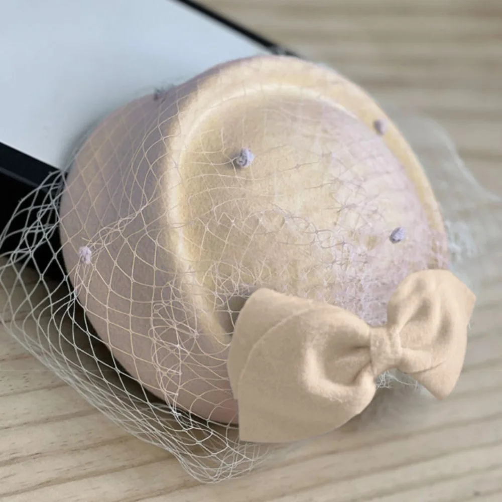 Nuovo cappello con fiocco in lana di cashmere con temperamento a velo Cappello da fascinator casual Cappello formale da donna in stile britannico