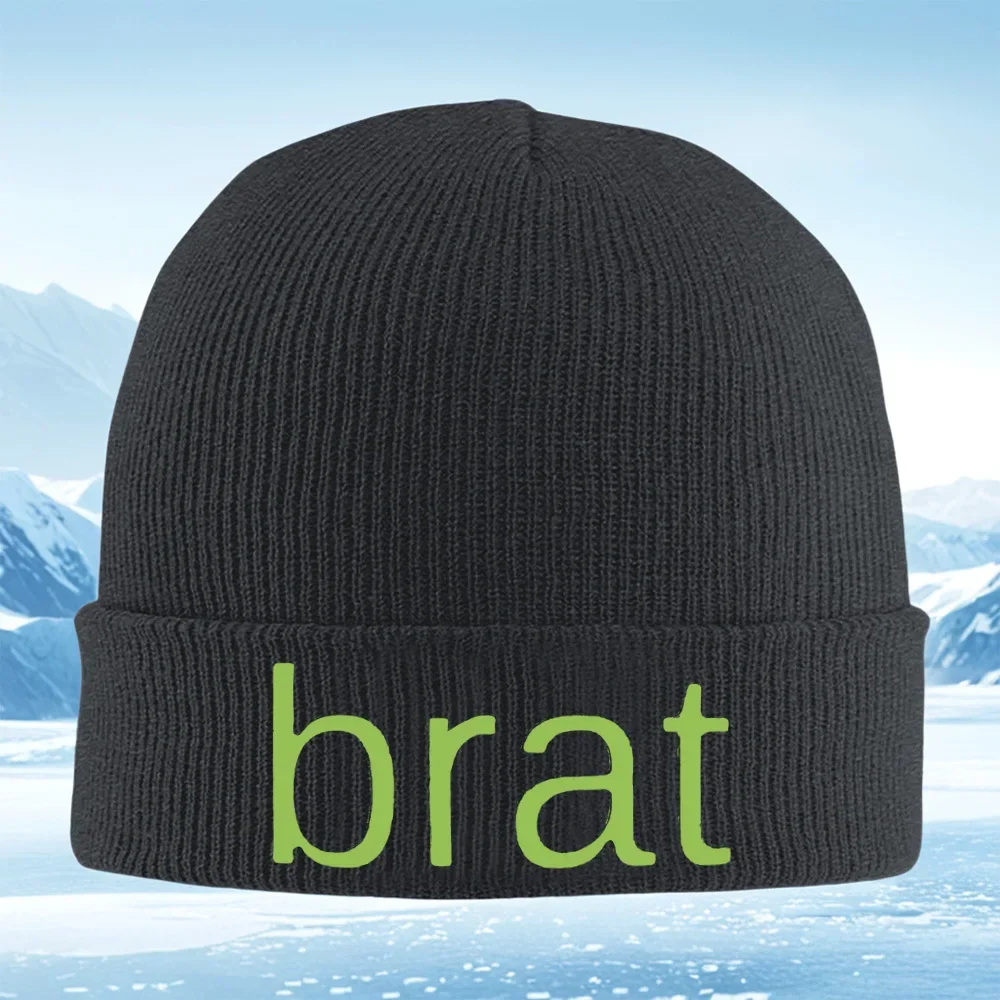Parola verde su sfondo nero Cappello lavorato a maglia Uomo Donna Berretto unisex Pullover Berretto invernale termico caldo Natale Ciclismo all'aperto Ciao