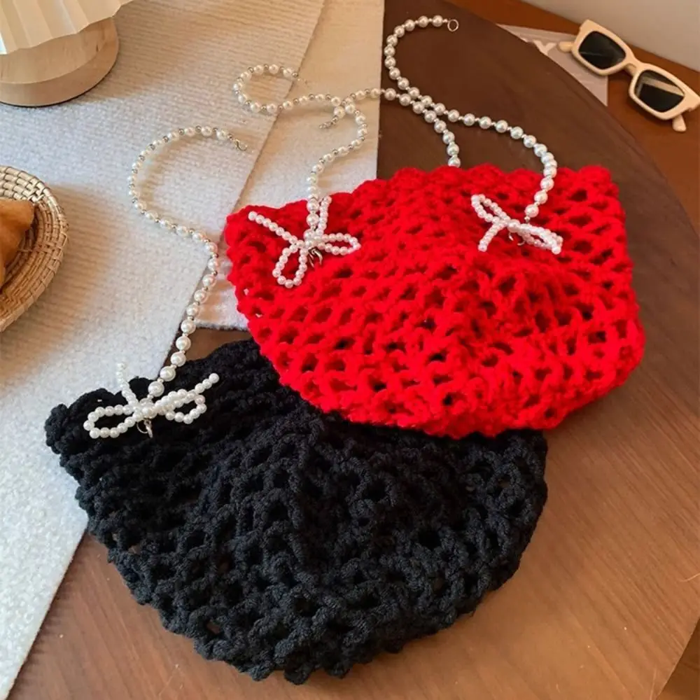 Cappello lavorato a maglia all'uncinetto con nappe di perle casual Berretto lavorato a maglia sottile stile bohemien Berretto coreano con perle con fiocco scavato all'aperto