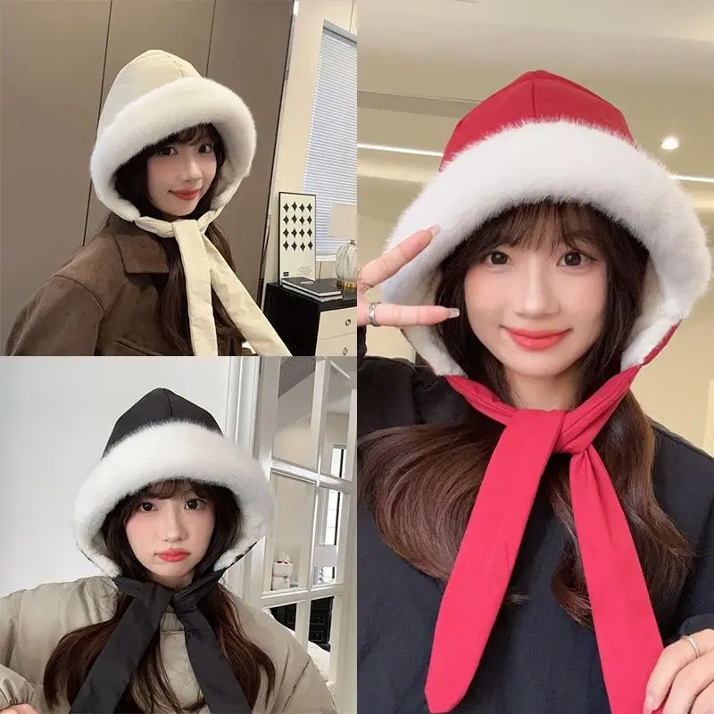 Cappello caldo con cinturino alla moda coreano Berretto di protezione per le orecchie Cappelli a secchiello foderati in pile ispessito Borsa a tracolla con patta per le orecchie versatile casual