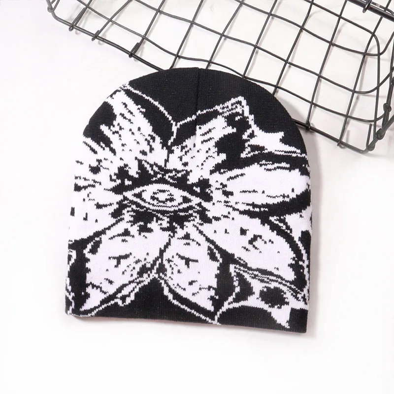 Cappello lavorato a maglia jacquard con motivo grande di tendenza personalizzato 1 pezzo, zucchetto per sport all'aria aperta da strada, berretto unisex