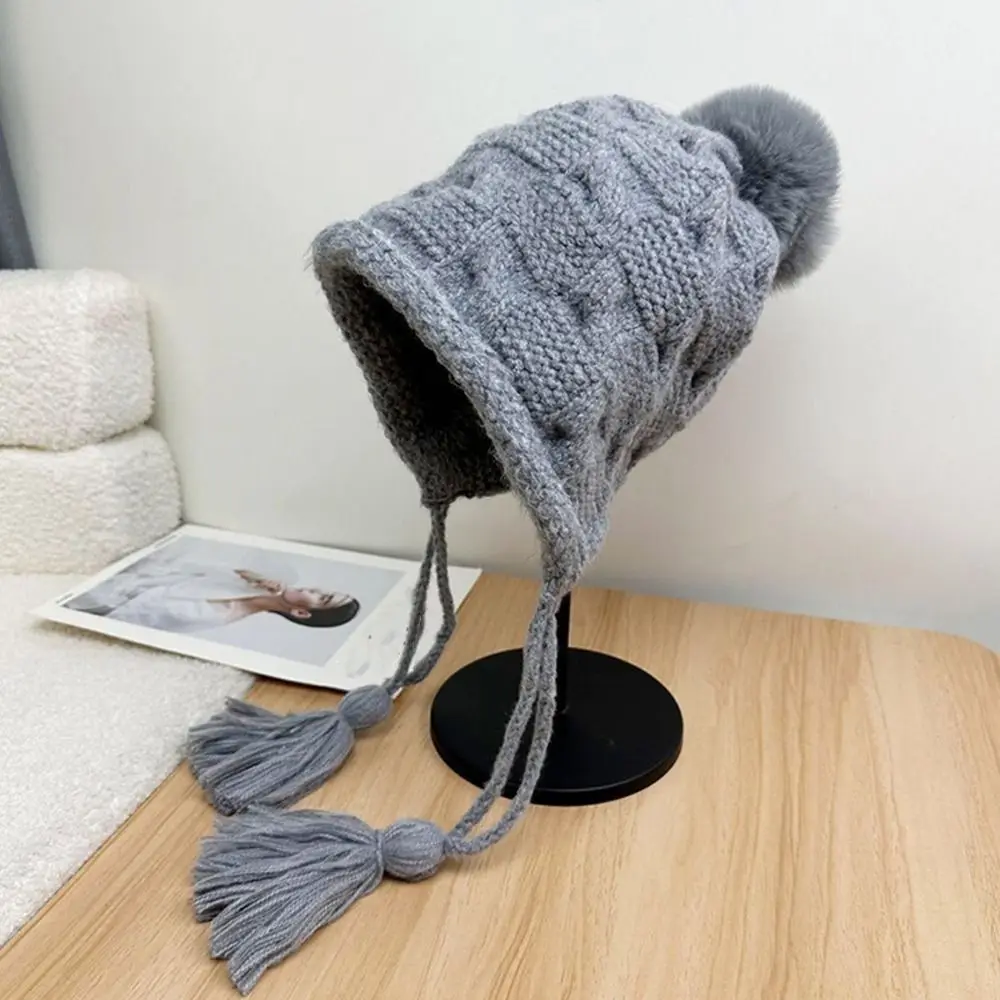 Cappello lavorato a maglia con nappe alla moda Cappello a cuffia caldo tinta unita Cappello di protezione per le orecchie antivento a prova di freddo invernale