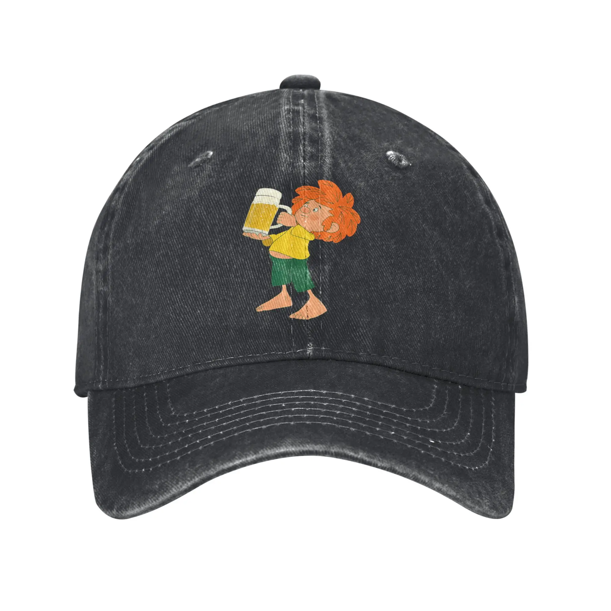 Pumuckl Drinks Beer Berretto da baseball stile unisex Anime Cartoon Cappelli in denim invecchiato Berretto Vintage Outdoor Regalo per tutte le stagioni Snapback