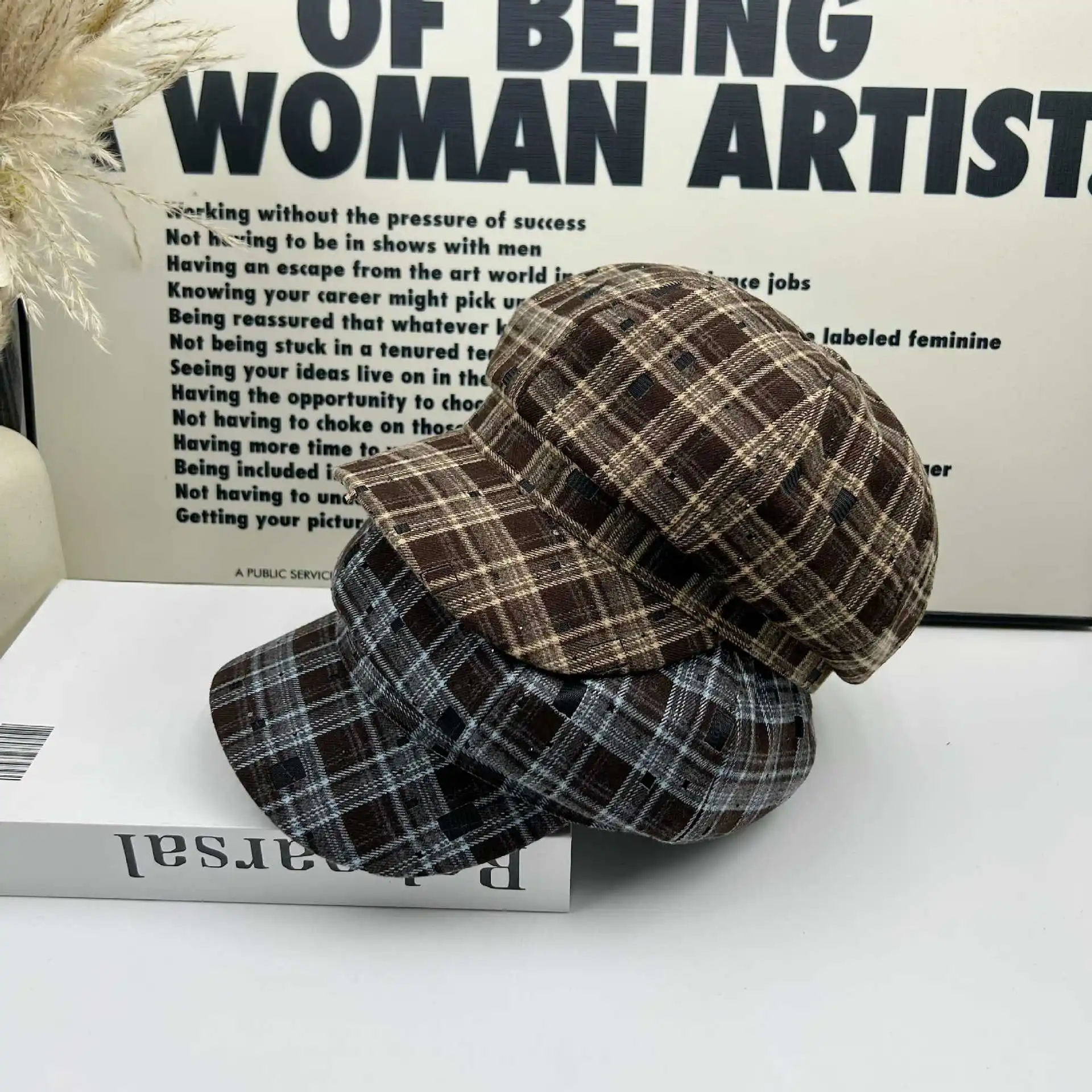 Cappello scozzese ottagonale in stile giapponese retrò da donna alla moda autunno inverno berretto da artista con viso piccolo protezione rotonda con tesa piegata superiore