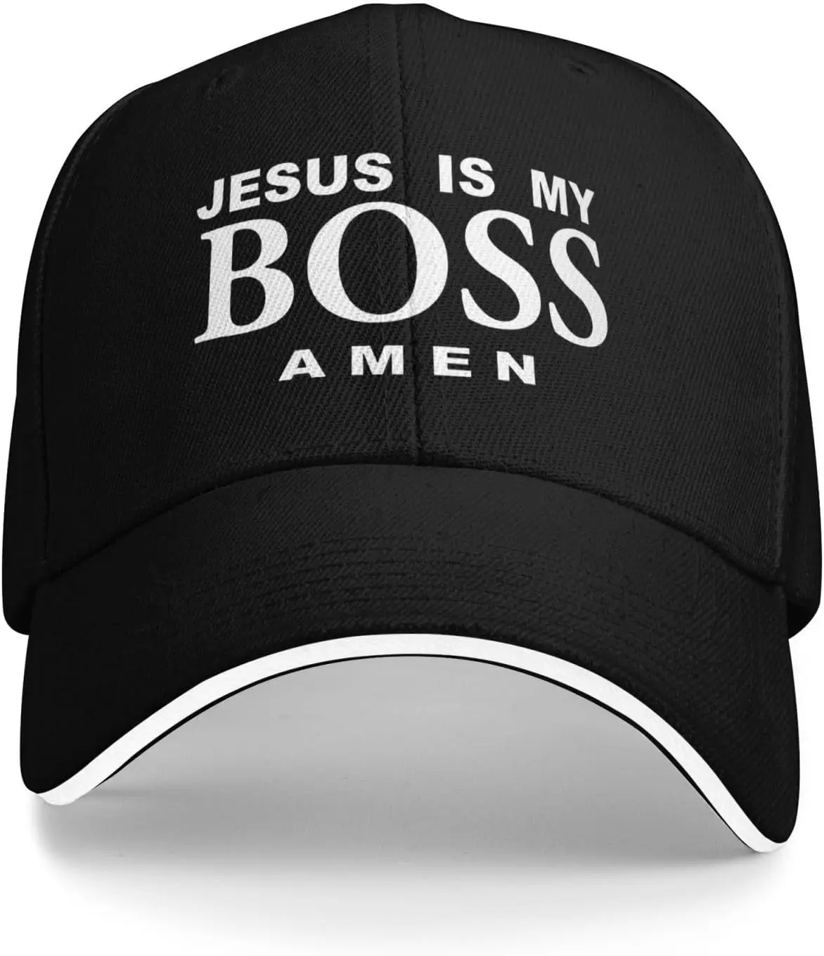 Jesus Is My Boss Amen Berretto da baseball Cappello da papà regolabile in poliestere Berretto da sole unisex per esterni