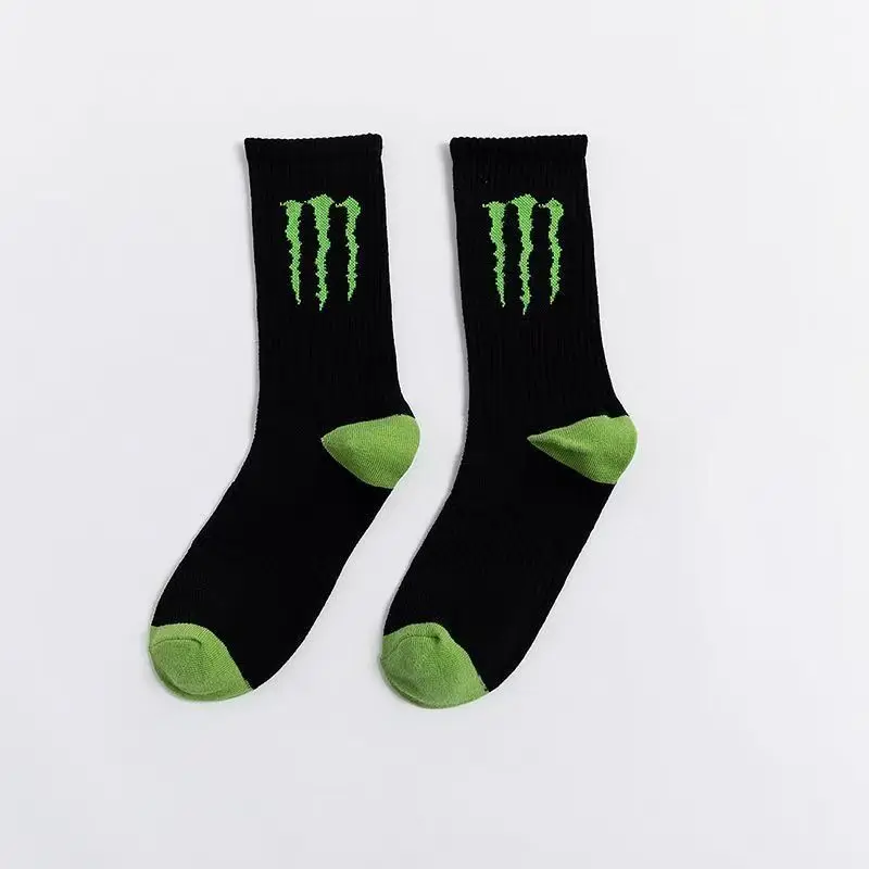 Calzini di marca Monster Energy alla moda, Parkour sportivo da uomo e da donna a canna media Calore esterno, Assorbimento del sudore in puro cotone