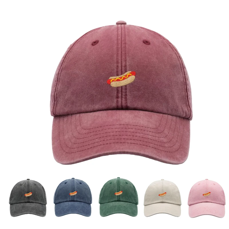 Cappellino da Baseball con Motivo Hot Dog per Donne, Stile Vintage Lavato, Unisex Regolabile, Adatto per Sport all'Aperto, Divertente per le Vacanze Estive