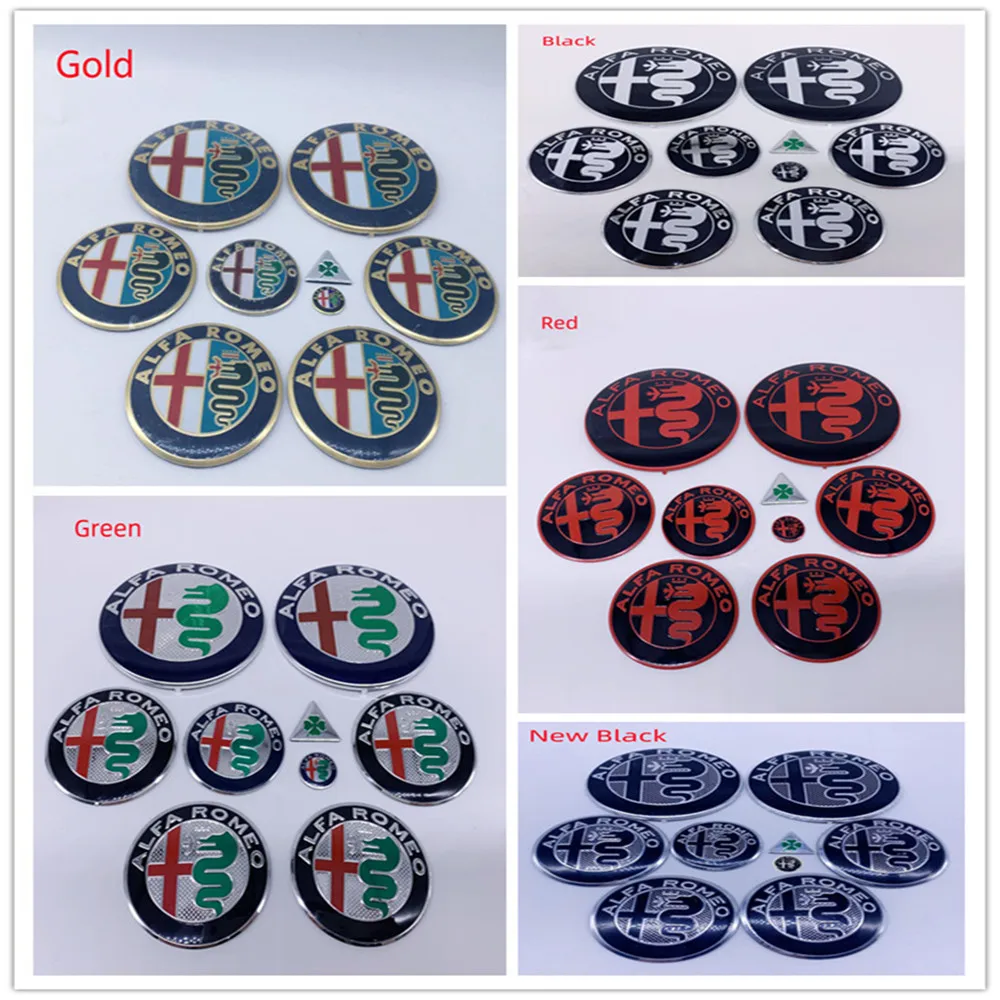 1 set 9 pezzi per Alfa Romeo adesivi logo AUTO 74mm cofano bagagliaio 50MM 40MM tappo centrale ruota emblema Brera GT Spider Giulietta Stelvio