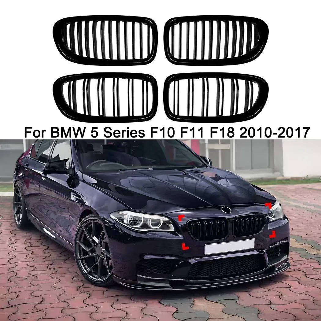 Griglia anteriore a doppia barra nera lucida F10 F11 per BMW Serie 5 F10 F11 2010-2017, griglie da corsa a doppia linea.