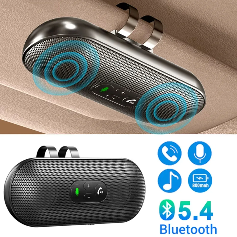 T18 portatile Bluetooth 5.4 vivavoce kit per auto altoparlante 3W ricevitore audio wireless lettore musicale MP3 con cancellazione del rumore clip per visiera parasole