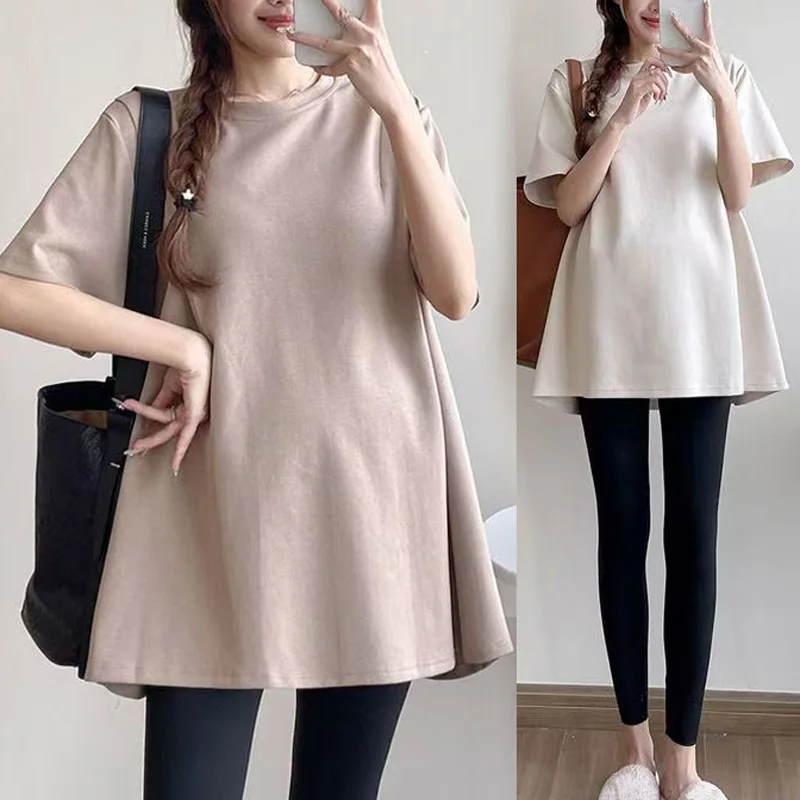 T-shirt premaman tinta unita manica lunga vestiti per allattamento al seno per donne incinte T-shirt postpartum in cotone