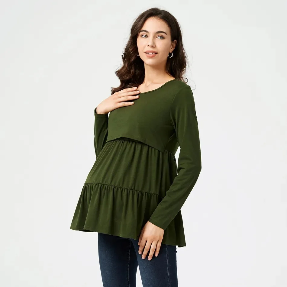 T-shirt ampia morbida e confortevole moda primavera e autunno tinta unita girocollo donna incinta top a maniche lunghe per allattamento al seno