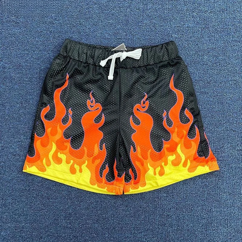 Nuovi pantaloncini da basket americani da uomo, pantaloncini sportivi corti al ginocchio, stampati a fiamma, ad asciugatura rapida, traspiranti e corti