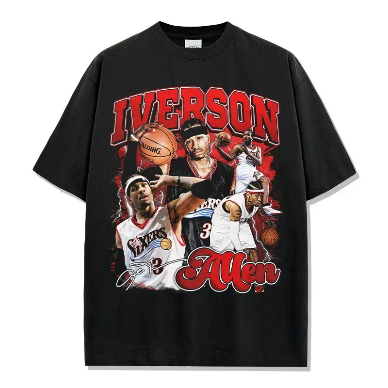 T-Shirt Vintage con Grafica di Allen Iverson Cross Over Legend, Oversize con Collo Tondo, in Cotone Effetto Vissuto, Stile Streetwear da Basket
