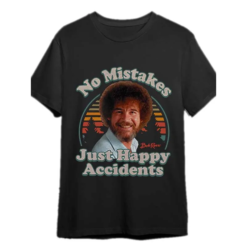 T-shirt da uomo No Mistakes Just Happy Accidents Vintage Artist in cotone nero a maniche corte girocollo Primavera ed Estate 2026