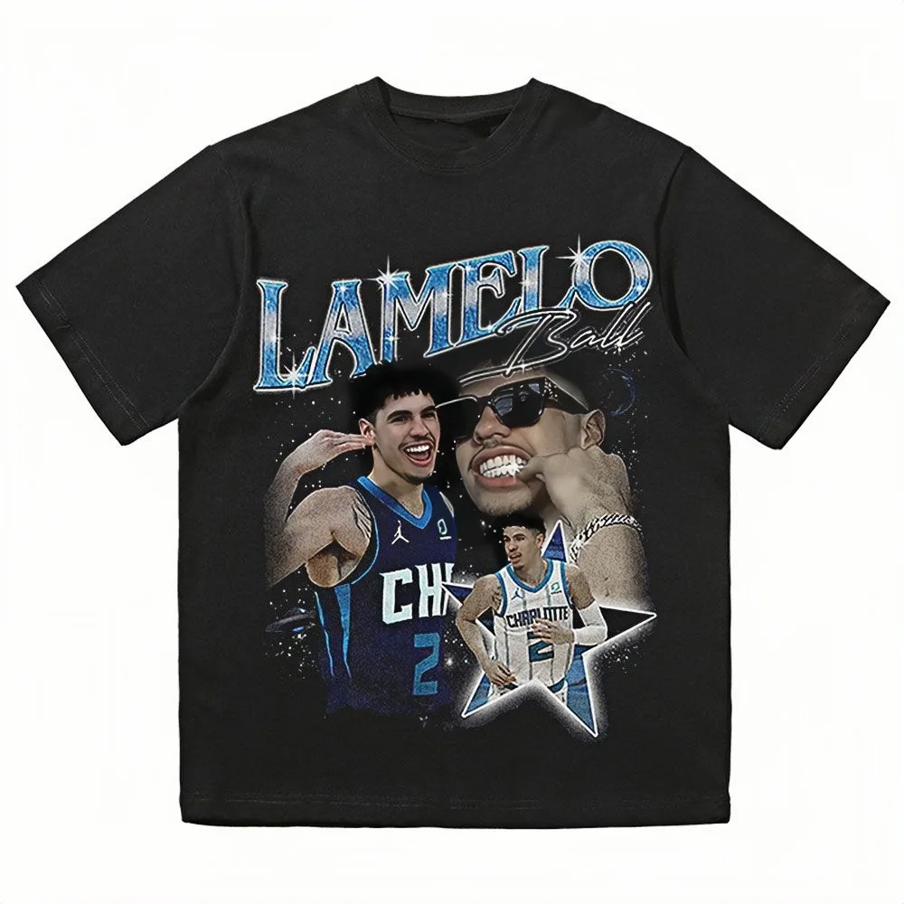 T-shirt con stampa classica Summer Basketball Star per uomo e donna, in morbido cotone traspirante, casual, per partite di basket, abbigliamento sportivo all'aperto