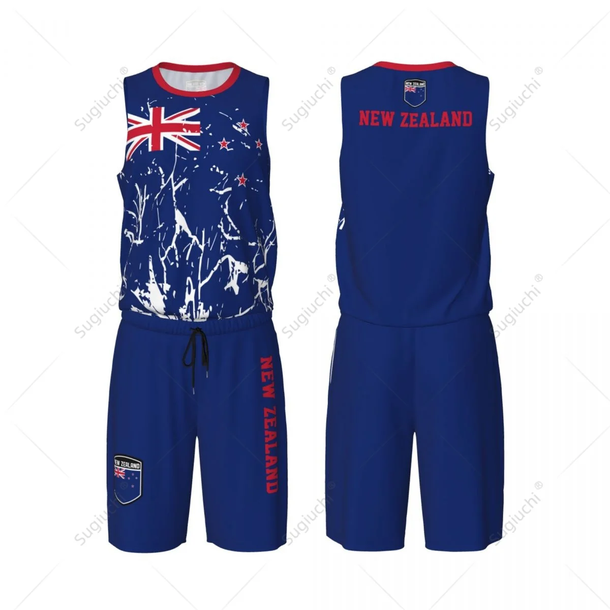 Set da basket da uomo con bandiera della Nuova Zelanda, maglietta e pantaloni senza maniche