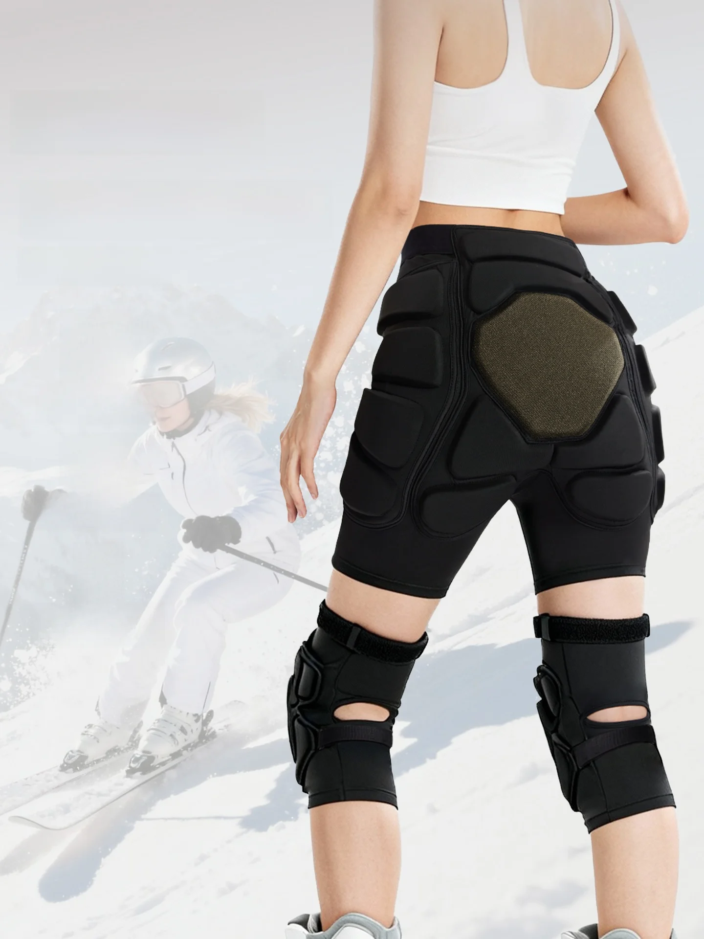 HANYA Profional Attrezzatura per la protezione dello sci in silicone Set completo Cuscinetto interno indossabile per il culo Ginocchiera incorporata Attrezzatura da sci