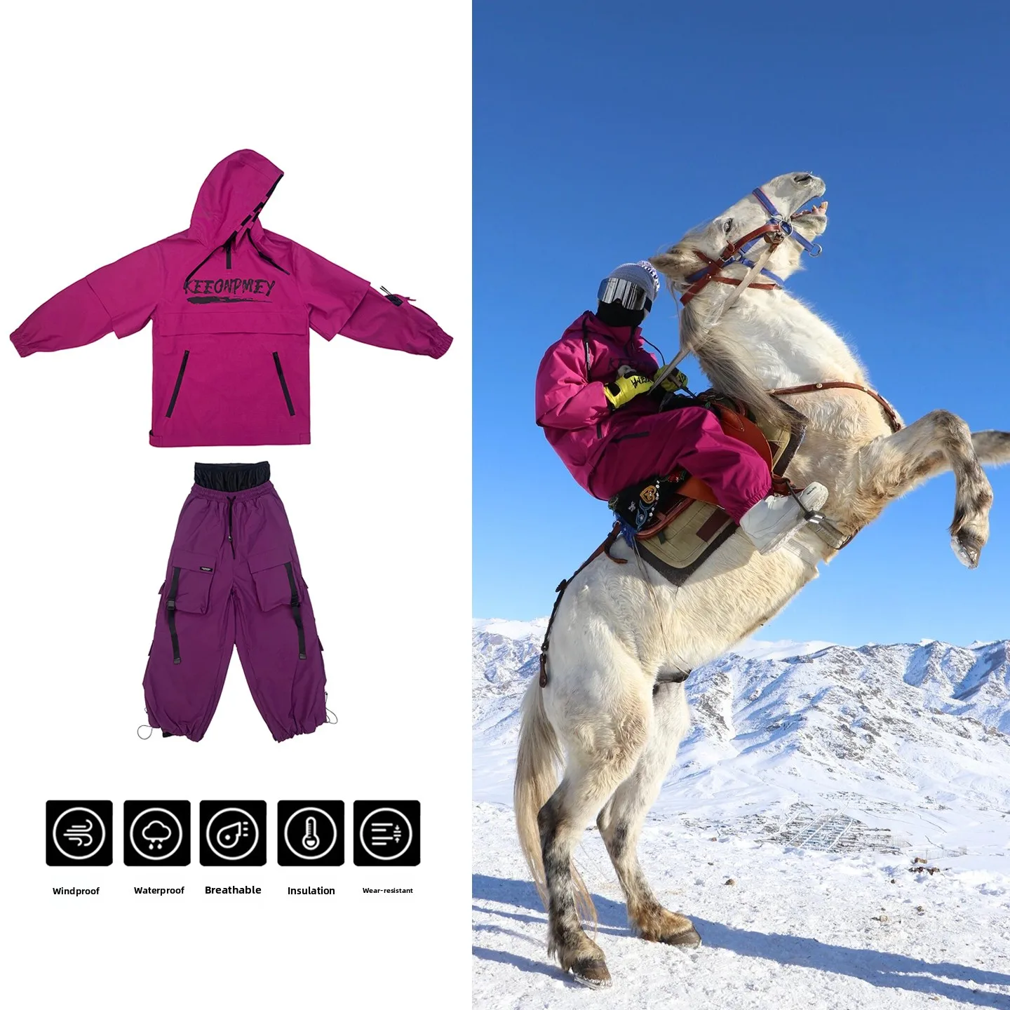 Set di tute da sci Thiened Fce per uomo e donna, pantaloni da neve professionali, impermeabili, antivento, resistenti all'usura, stagione della neve